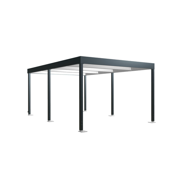 Strešný trapéz a obvodové profily sú prekryté lemovacím plechom, ktorý zakrýva konštrukčné detaily pri bočnom pohľade a dáva tak prístrešku čistý, moderný dizajn.
