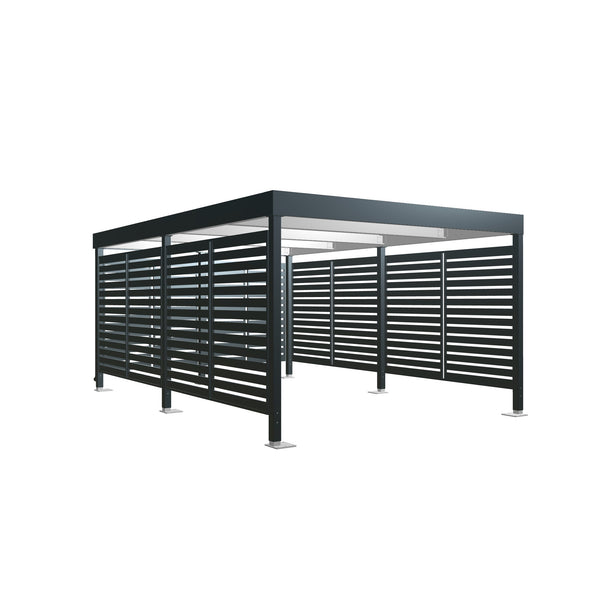 Prístrešok je možné osadiť bočnými stenami s lamelami z hliníku, dreva alebo WPC.