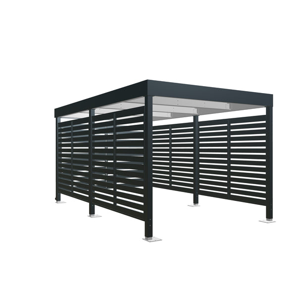 Prístrešok je možné osadiť bočnými stenami s lamelami z hliníku, dreva alebo WPC.