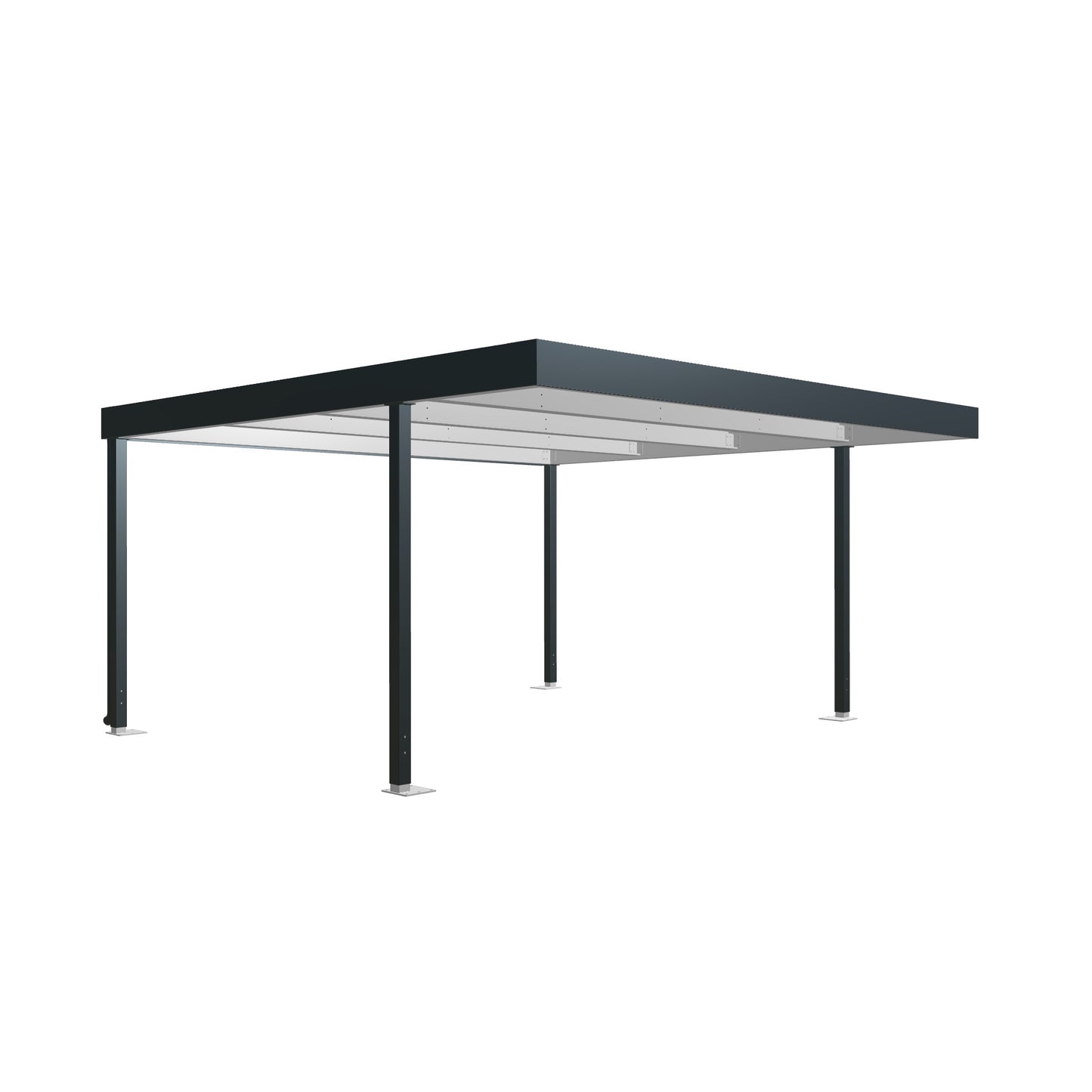 Strešný trapéz a obvodové profily sú prekryté lemovacím plechom, ktorý zakrýva konštrukčné detaily pri bočnom pohľade a dáva tak prístrešku čistý, moderný dizajn.
