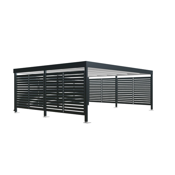 Prístrešok je možné osadiť bočnými stenami s lamelami z hliníku, dreva alebo WPC.